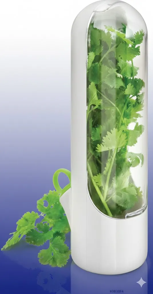 تعتمد حافظه اعشاب هذه على تصميم ميكانيكي ذكي؛ حيث يتكون الهيكل من خزان مياه سفلي محكم الإغلاق بسدادة سيليكون مرنة، وجسم أسطواني مرتفع يسمح بوضع حزم الأعشاب بشكل عمودي. هذا الوضع العمودي يحاكي الحالة الطبيعية لنمو النبات، حيث تظل الجذور مغمورة في كمية قليلة من الماء المتجدد بينما تظل الأوراق في الأعلى محمية داخل النافذة الشفافة من تيارات الهواء الباردة والمجففة داخل الثلاجة. النافذة الشفافة مصقولة بدقة لتسمح لكِ بمتابعة مستوى الماء وحالة الخضروات بلمحة بصر دون الحاجة لفتح الحافظة وتعريضها للهواء الخارجي.وداعاً للهدر: استثمار ذكي لميزانية أسرتكِ في السويس