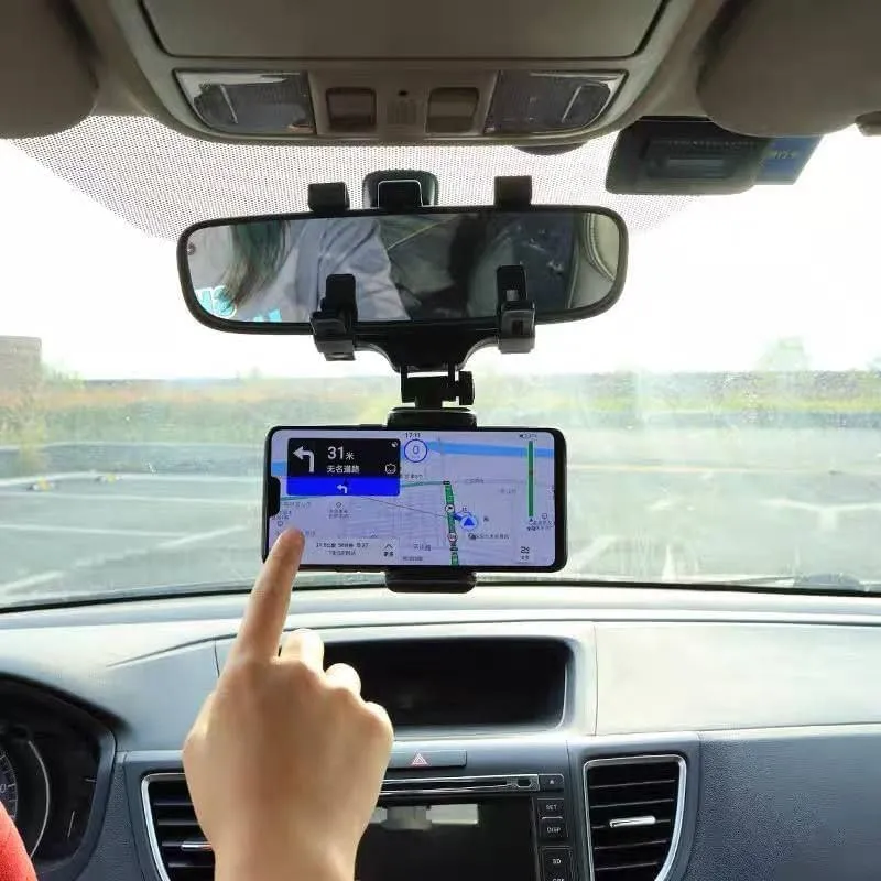 حامل موبايل مرآة السيارة 360 درجة – ستاند ذكي قابل للتعديل لتثبيت الهاتف بأمان