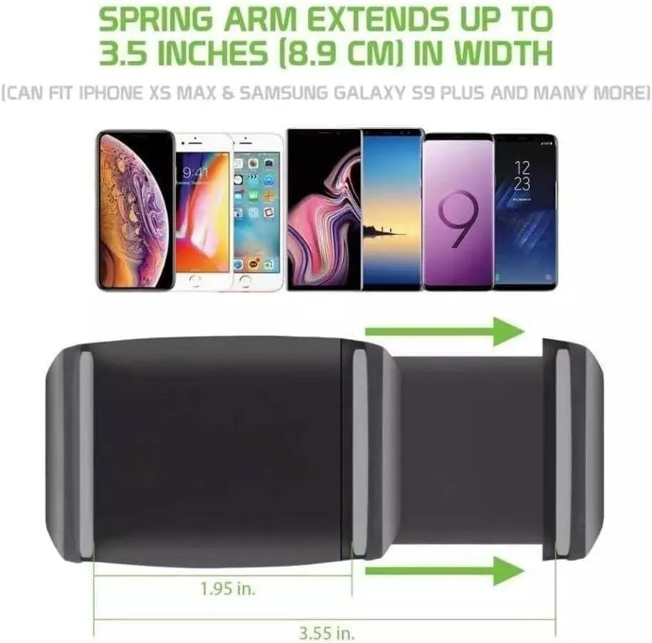نحن في العربي مول ندرك أن الطرق قد تكون غير ممهدة أحياناً؛ لذا تم تزويد “حامل موبايل” مرآة السيارة بذراع زنبركية (Spring Arm) فائقة القوة. هذه الذراع تتمدد لتستوعب الهواتف التي يتراوح عرضها بين 1.95 بوصة وحتى 3.55 بوصة (حوالي 8.9 سم)، مما يجعله متوافقاً مع أحدث إصدارات آيفون (iPhone XS Max) وسامسونج (Galaxy S9 Plus) وغيرها من الهواتف الضخمة. الأجزاء الملامسة للمرآة وللهاتف مغطاة بطبقات من السيليكون الناعم المانع للانزلاق، مما يحمي ديكور سيارتكِ وجسم هاتفكِ من الخدوش ويوفر ثباتاً صخرياً يمنع اهتزاز الشاشة حتى في أصعب المنحنيات.