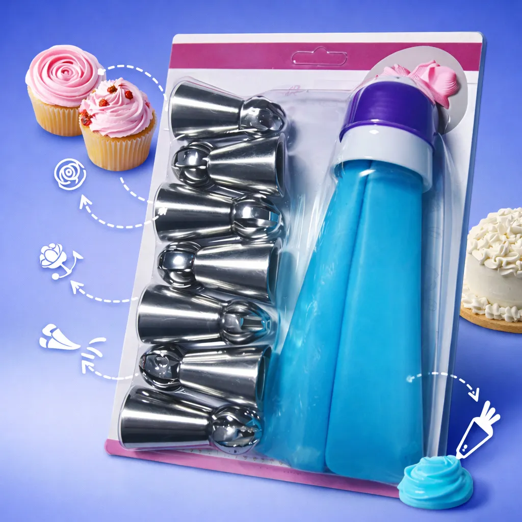 للحصول على أفضل نتيجة، تأكدي من قص طرف كيس الحلواني بمقدار يسمح للوصلة بالبروز قليلاً، ثم ثبتي الـ بلبل المختار من الخارج؛ هذا يتيح لكِ تغيير الـ بلبل بكل سهولة دون اتساخ يديكِ. تذكري أن سر التزيين الناجح يبدأ بـ بلابل قوية وواضحة المعالم، ومع هذا الطقم الأصلي، ستكون مهمة تزيين الحلويات في السويس هي الجزء الأكثر إثارة في يومكِ، مع ضمان الأمان والجمال في آن واحد بفضل جودة بلابل العربي مول الموثوقة التي توفر لكِ الدقة والقوة والنظافة المطلقة.