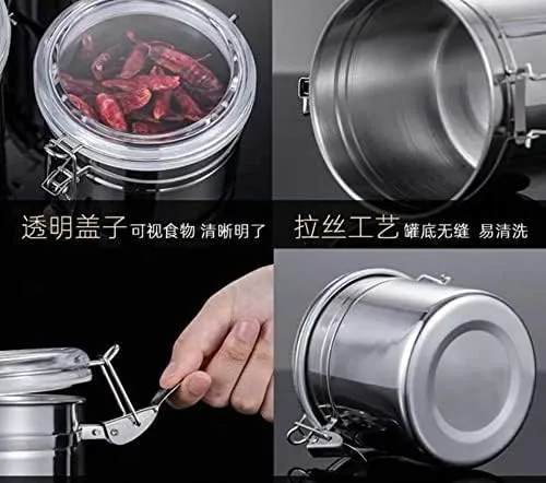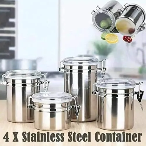 طقم توابل ستانلس ستيل 4 قطع مقاسات متدرجة – برطمانات حفظ محكمة الإغلاق بأغطية شفافة