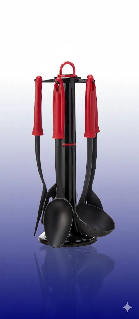أثبتت دراسات تنظيم المنزل أن المطبخ المرتب يزيد من الإبداع ويقلل من الإجهاد أثناء تحضير الوجبات. وجود طقم توزيع موحد الشكل واللون على حامل عمودي يمنحكِ شعوراً بأنكِ طاهية محترفة في مطعم فاخر. التباين اللوني بين الأسود والأحمر يحفز النشاط والرغبة في الطهي، بينما يمنع الحامل الفوضى التي تسببها الأدوات المبعثرة في الأدراج. نحن نوفر لكِ هذا الطقم في العربي مول السويس لنضمن لكِ تجربة طهي تجمع بين المتعة البصرية والسهولة العملية في كل رشفة وكل طبق.تكوين الـ 7 قطع: الأدوات الشاملة لكل وصفة