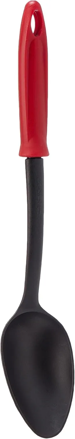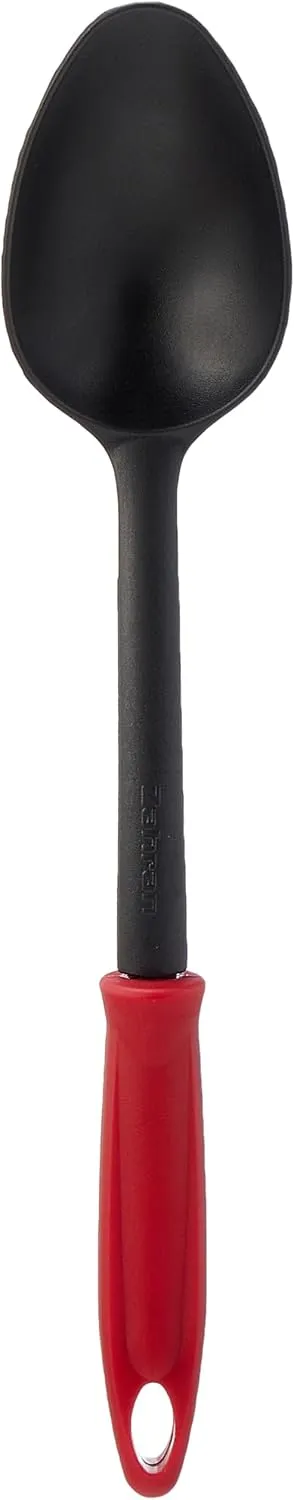 يتميز طقم توزيع زهران بتصميمه الانسيابي الذي يراعي راحة اليد وسهولة الحركة؛ حيث تأتي المقابض باللون الأحمر الناري الذي يعطي لمسة من الحيوية، بينما تأتي رؤوس الأدوات باللون الأسود الذي يتحمل الاستخدام الشاق ولا يتأثر بألوان الصلصات. المقابض مصممة هندسياً لتكون عريضة ومريحة للقبضة، مع وجود فتحات علوية تسمح بتعليق الأدوات على الحامل العمودي المرفق بكل سهولة. الحامل بحد ذاته قطعة فنية توفر مساحة كبيرة على “الرخامة” وتجعل أدواتكِ المفضلة دائماً في متناول يدكِ بلمحة بصر.خامة النايلون الفاخرة: حماية مطلقة لأوانيكِ الغالية