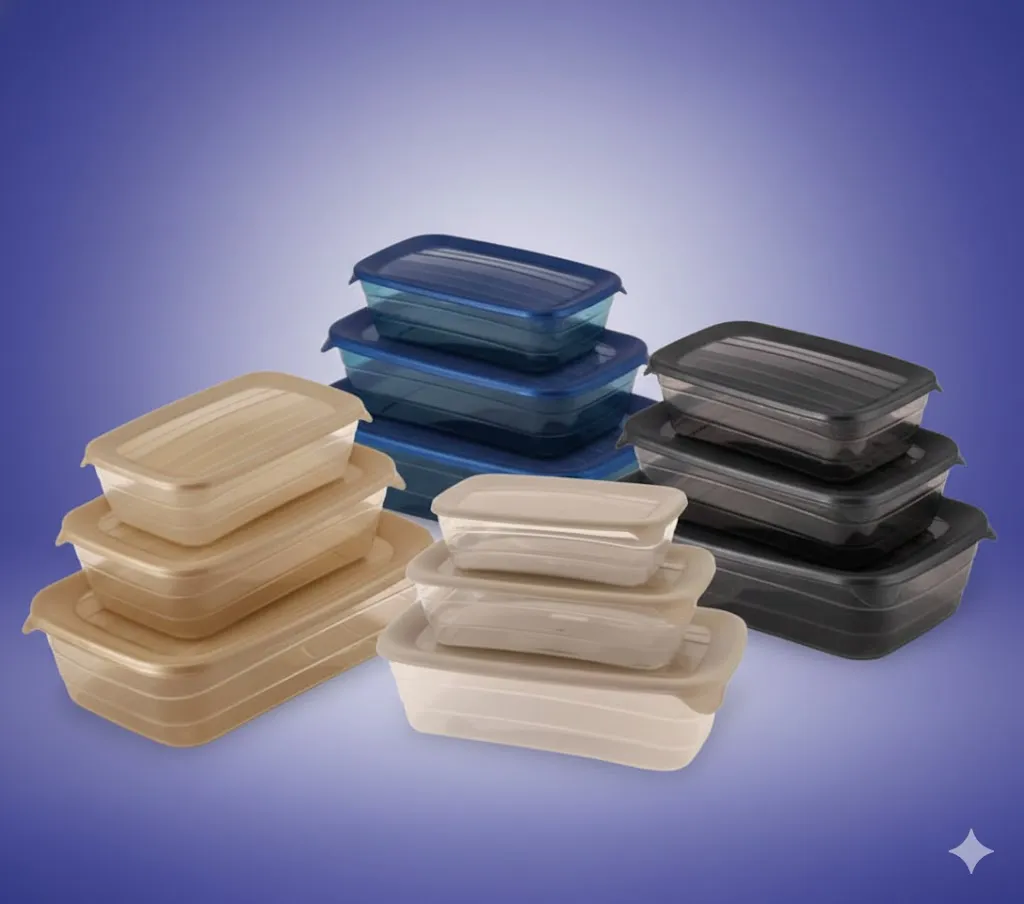 يتميز طقم ثلاجه أزرو بتصميمه المستطيل المدروس؛ حيث تلاحظ أن الحواف المستقيمة تسمح بوضع الحافظات بجانب بعضها البعض دون ترك فراغات مهدرة، على عكس الحافظات الدائرية. هذا التصميم يسمح لكِ باستغلال أرفف الثلاجة أو “الديب فريزر” بأقصى كفاءة ممكنة. القاعدة المتدرجة تسمح بوضع القطع فوق بعضها البعض (Stackable) بثبات تام، مما يوفر مساحة رأسية كبيرة ويجعل الثلاجة تبدو منظمة وكأنها لوحة فنية فندقية. الألوان المتوفرة للأغطية (الأزرق العميق، الأسود الملكي، الذهبي الفخم، والبيج الهادئ) تتيح لكِ تنسيق مطبخك حسب ذوقك الخاص أو حتى تخصيص لون معين لكل نوع من الأطعمة.