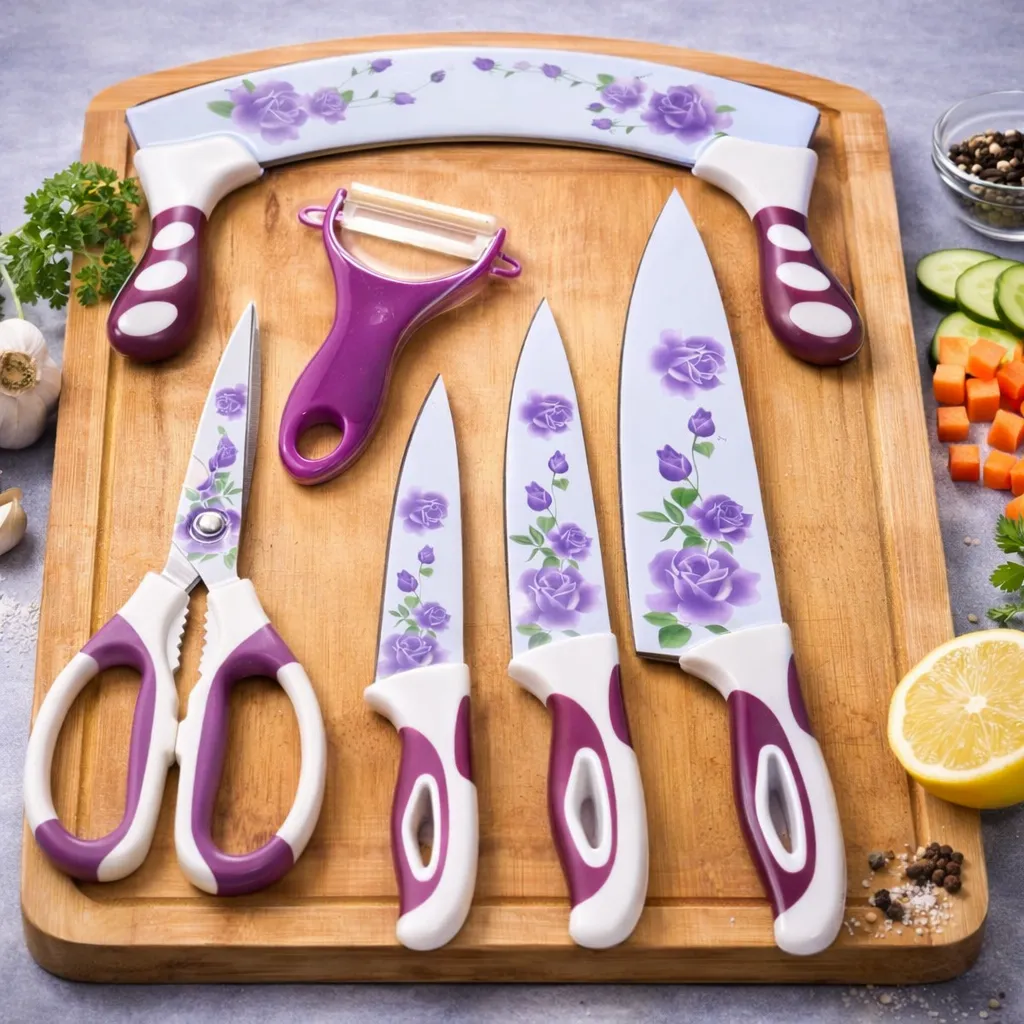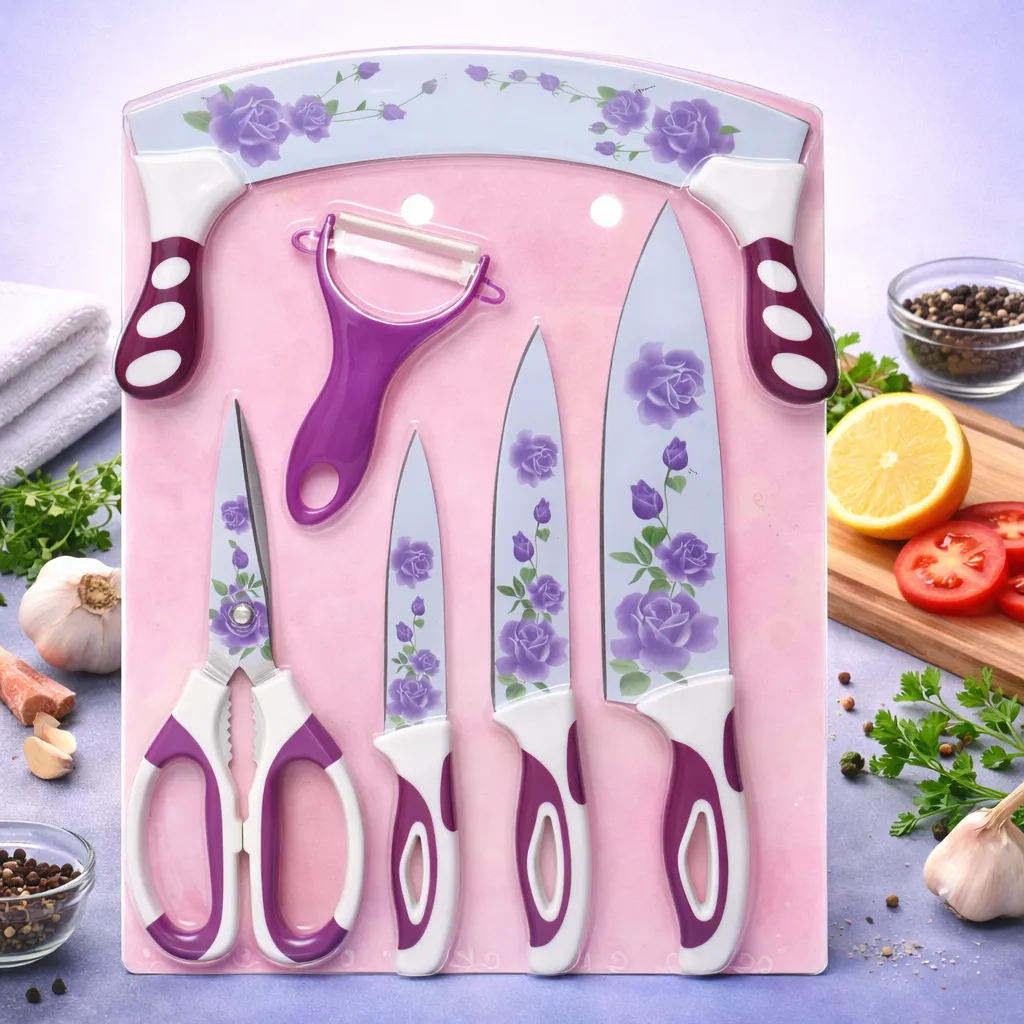 طقم سكاكين العربي مول 6 قطع بنقشة الشمس: ثورة الألوان والحدة في مطابخ السويس
