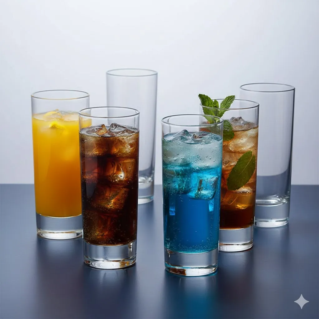 أولاً، للعصائر الطبيعية والفرش: السعة تكفي لتقديم كمية مشبعة من العصير مع مساحة كافية لمكعبات الثلج. ثانياً، للمشروبات الغازية: التصميم الطويل يحافظ على فوران المشروب (Carbonation) لفترة أطول مقارنة بالأكواب الواسعة. ثالثاً، للمياه الفوارة والمنكهة: الشفافية تبرز جمال الفقاعات وشرائح الليمون بوضوح. رابعاً، كطقم يومي للمياه: بساطته تجعله مناسباً جداً ليكون الشوب الأساسي على مائدة الغداء أو العشاء العائلية، حيث يتحمل الاستخدام اليومي المكثف بكل كفاءة.