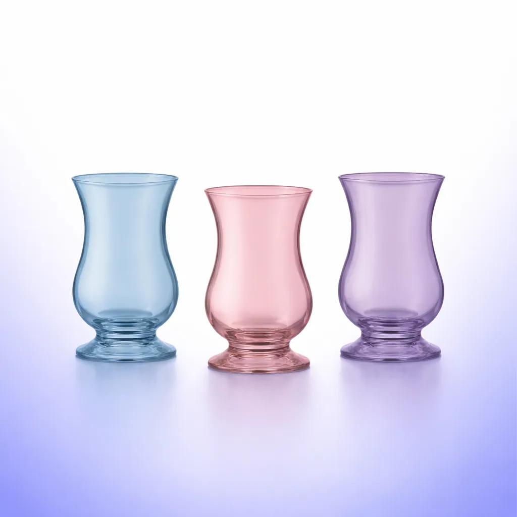 يتميز طقم شوب عصير باشابتشي Pera بتصميمه الهندسي الأنيق الذي يعتمد على تدرج الانحناءات؛ حيث يبدأ بفتحة علوية واسعة تسمح بانتشار رائحة الشاي العطرية، ثم يضيق عند “الخصر” ليوفر قبضة محكمة ومريحة للأصابع تمنع انزلاق الكوب، وينتهي بقاعدة دائرية سميكة تضمن الثبات المطلق فوق الصواني الزجاجية والمعدنية. الزجاج مصقول بعناية ليكون خالياً من أي شوائب، وتتألق ألوان الباستيل الشفافة (البنفسجي، الوردي، والأزرق) لتصنع تلاعباً ضوئياً مذهلاً مع انعكاسات الشاي الساخن أو العصائر الباردة، مما يخلق لوحة فنية فاتنة تسر الناظرين وتفتح الشهية في كل سهرة عائلية بالسويس.