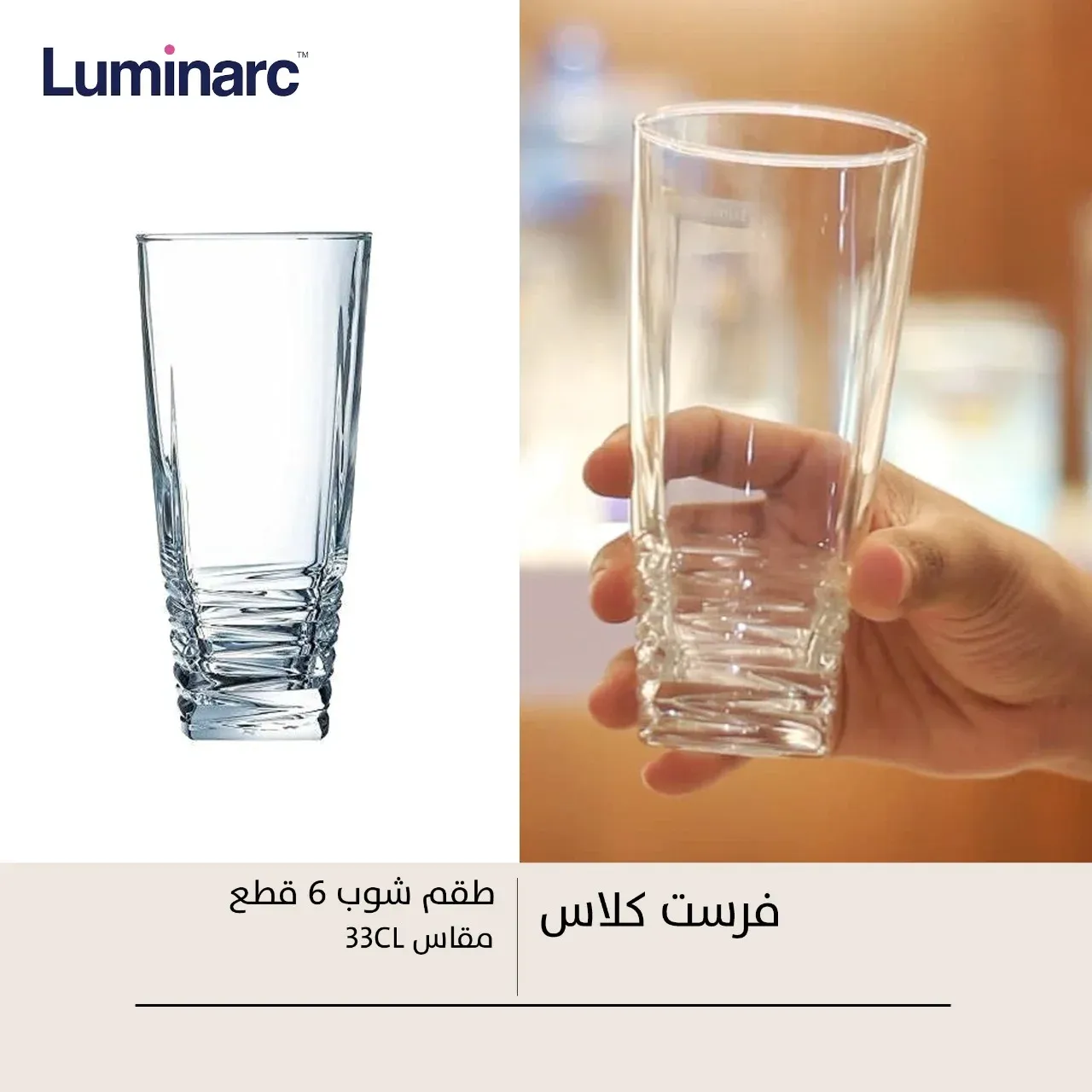 ارتقي بأسلوب ضيافتكِ اليوم، واحصلي على طقم كوبايات عصير لومينارك First Class من العربي مول، واستمتعي بمزيج من القوة والجمال الفرنسي الذي يستحقه منزلكِ في كل رشفة.