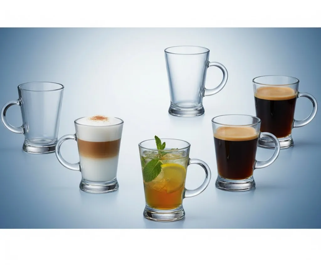 لإبراز جمال طقم مجات زجاج أزور، جربي تقديم المشروبات ذات الطبقات الملونة؛ فالتصميم الانسيابي سيظهر التباين بين الحليب والقهوة بشكل رائع. كما يمكنك تزيين حافة المج بقطعة من الفاكهة أو القليل من مسحوق القرفة على وجه المشروب، وستلاحظين كيف يرفع الزجاج النقي من قيمة التقديم البسيطة ويحولها إلى لوحة فنية مبهرة تشبه ما تقدمه أرقى الكافيهات العالمية.