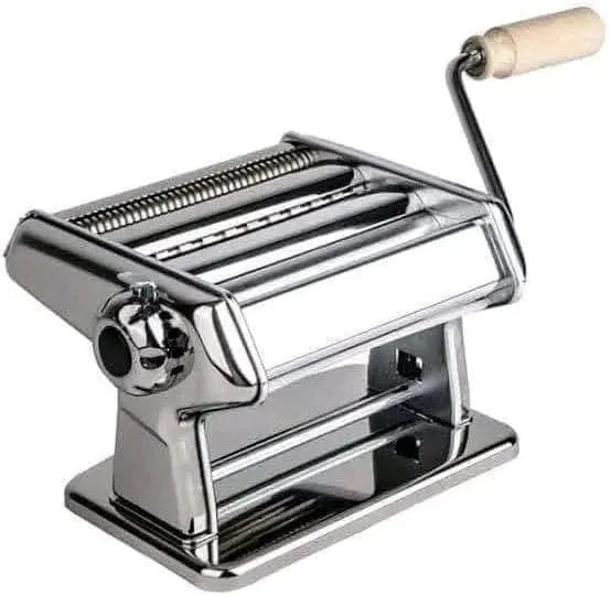 ماكينة شعرية ومكرونة يدوية ستانلس ستيل – ماكينة فرد وتقطيع العجين بمقبض خشبي