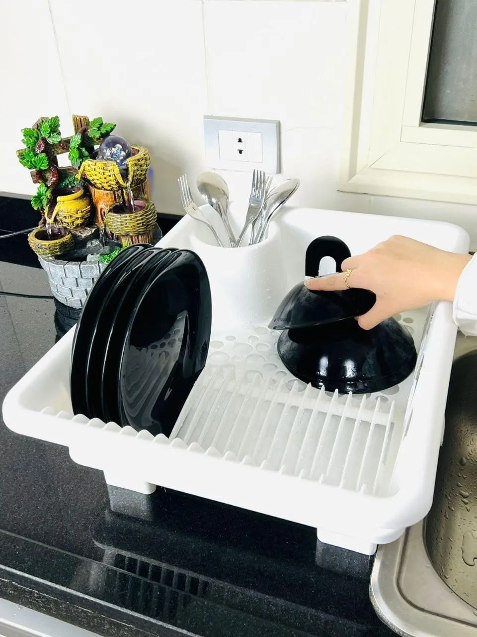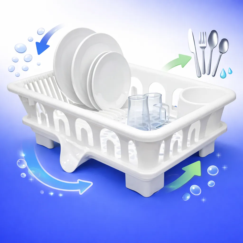 مطبقية مطبخ بلاستيكية مزودة بنظام تصريف مياه – رف تجفيف أطباق ومنظم مواعين ذكي