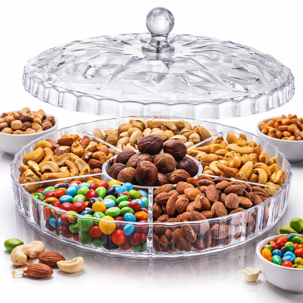 ## مميزات تصميم اطباق تسالي اكليريك المقسمة لـ 5 خانات (H2)