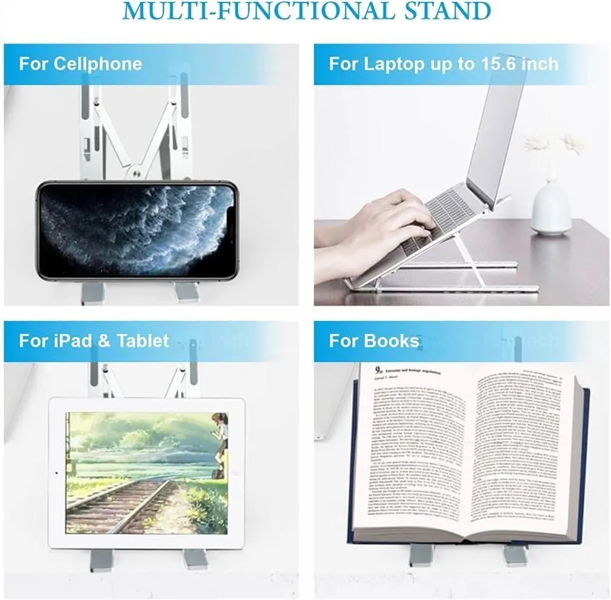 ستاند لاب توب ألومنيوم احترافي قابل للطي بـ 7 مستويات ارتفاع – حامل مكتب مبرد للأجهزة والكتب