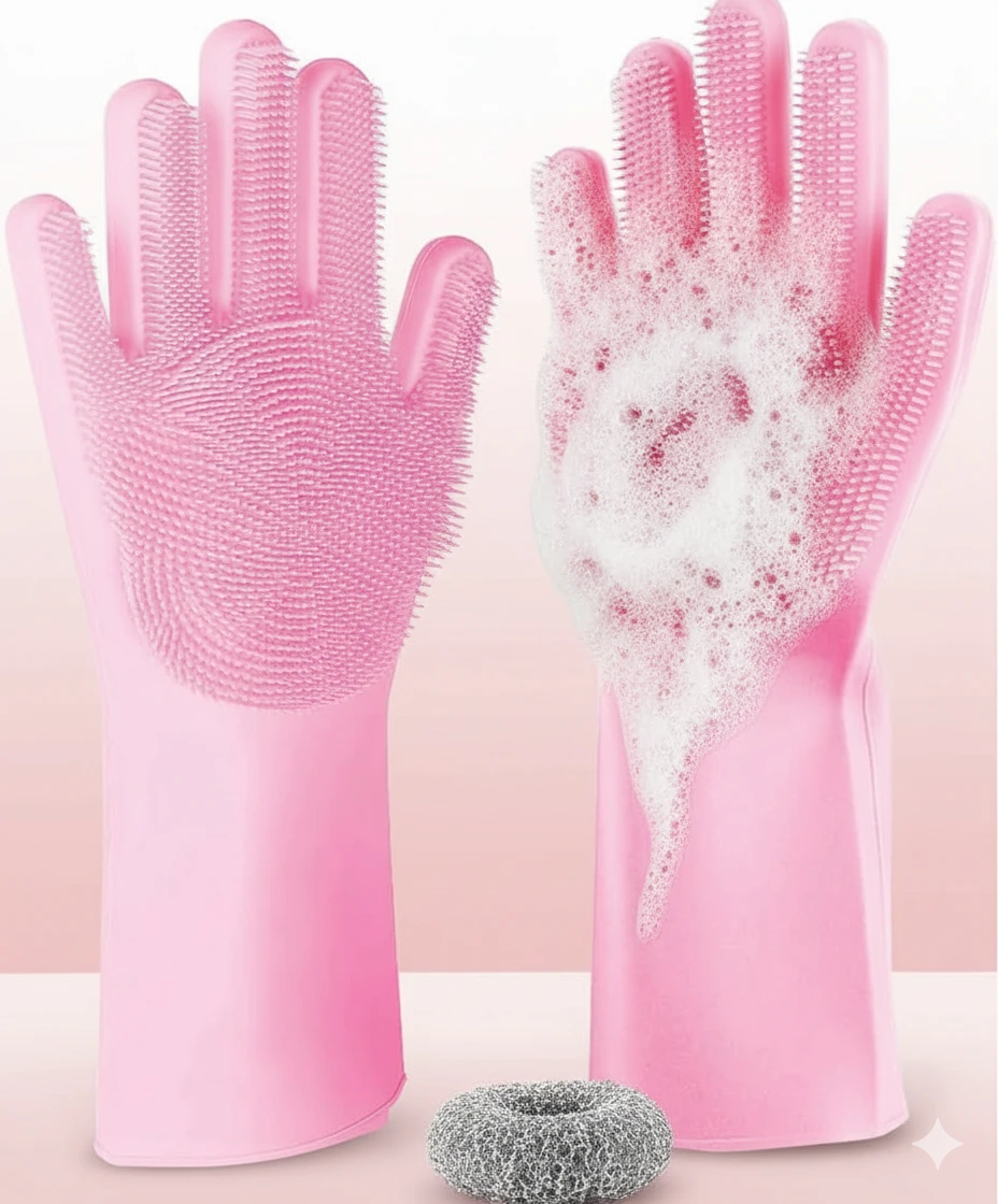 لا تتوقفي عند غسل الصحون فقط! جوانتي سيليكون متينة مقاومة للحرارة يفتح لكِ آفاقاً جديدة للتنظيف: