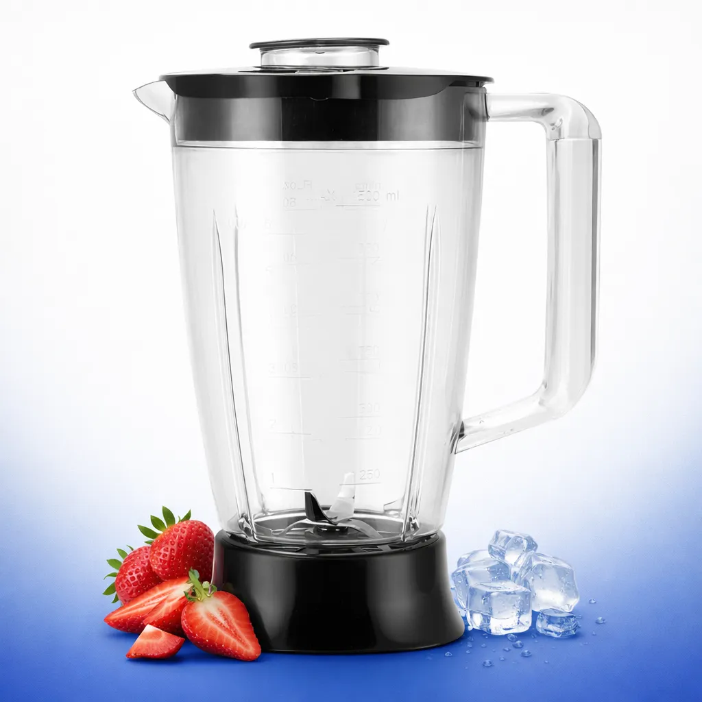 • الدورق الشفاف المدرج: يأتي الدورق بسعة 1.5 لتر مع تدريج واضح ليسهل عليكِ معايرة المقادير بدقة دون الحاجة لأدوات قياس خارجية.
