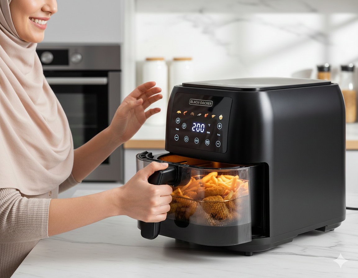 من أكبر التحديات في القلايات التقليدية هي الحاجة لفتح الدرج كل فترة لمتابعة نضج الطعام، مما يؤدي لتسرب الحرارة وزيادة وقت الطهي. لكن مع قلاية ديجيتال بلاك اند ديكر 8 لتر، تم دمج نافذة رؤية شفافة مع إضاءة داخلية قوية. يمكنك الآن رؤية تحول لون البطاطس إلى الذهبي أو مراقبة نضج الدجاج دون لمس الدرج، مما يحافظ على درجة الحرارة ثابتة ويضمن طهياً متساوياً.