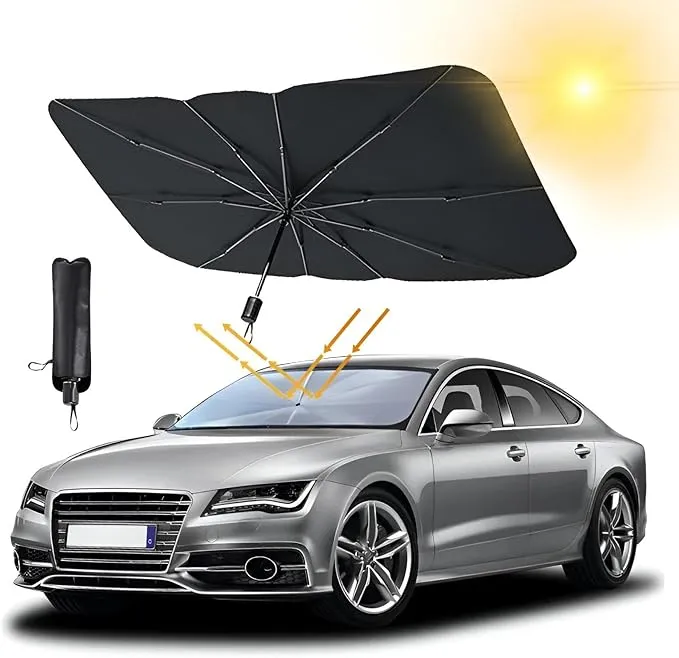 حافظ على برودة سيارتك واحمِ مقصورتها مع “مظلة واقية من الشمس للسيارة” المبتكرة. تتميز بتصميم مظلة فريد سهل الفتح والطي، مع طبقة عزل متطورة تحجب 99% من الأشعة فوق البنفسجية الضارة. توفر تغطية شاملة للزجاج الأمامي وتأتي مع حقيبة جلدية فاخرة للتخزين. الخيار الأمثل لحماية التابلوه والمقاعد من التشقق والبهتان الناتج عن حرارة الصيف القاسية.