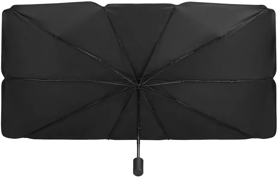 * تأكد من فتح المظلة بالكامل بحيث تلامس حواف الزجاج الأمامي من الداخل لضمان عدم دخول الحرارة من الجوانب.