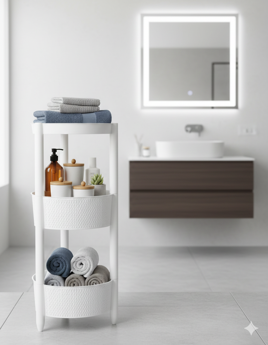 في الحمام: بفضل مقاومته للماء والصدأ (على عكس المعدن)، يعتبر مثالياً كمنظم للفوط، الشامبو، الكريمات، وأدوات العناية الشخصية بجوار الحوض أو البانيو.