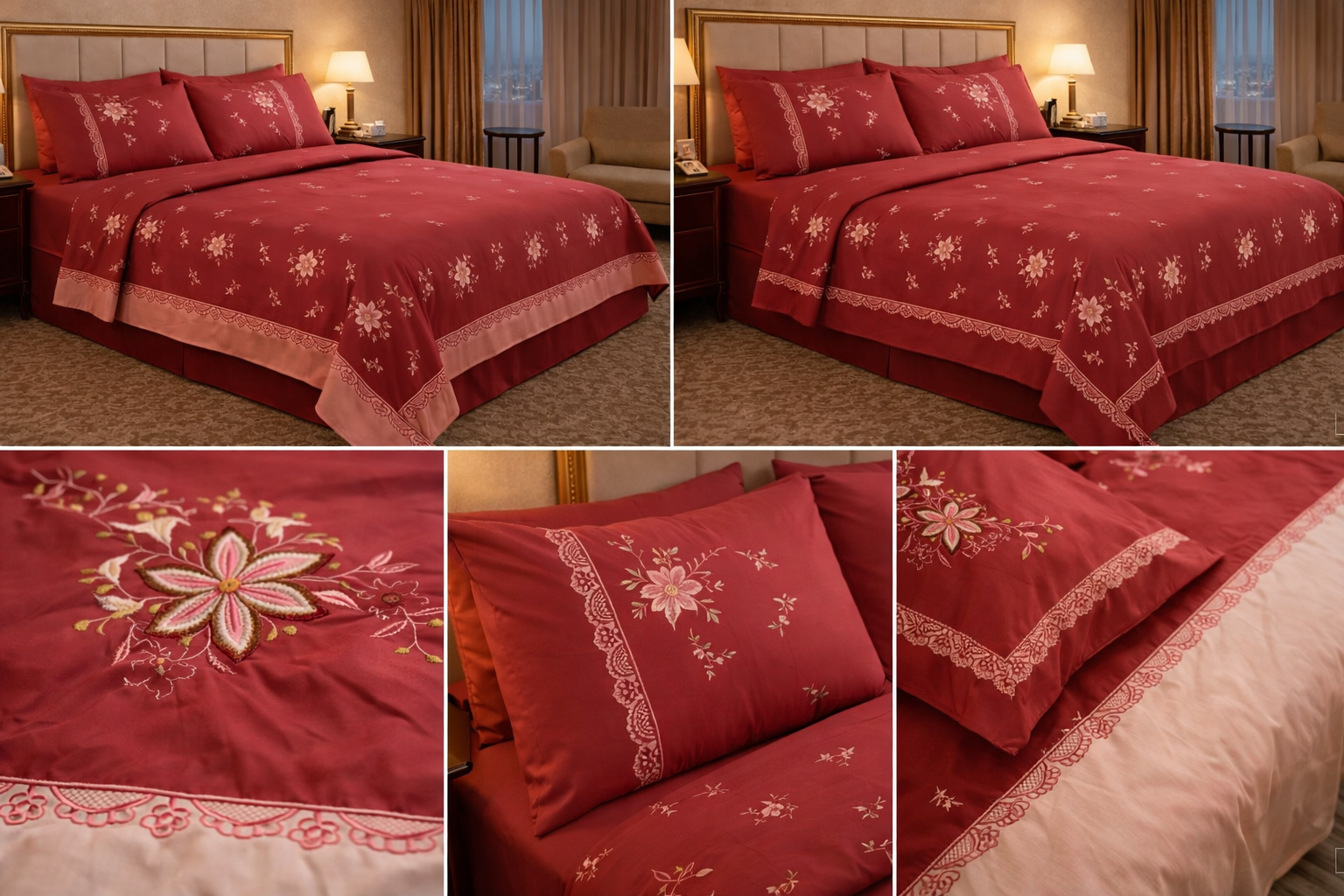 طقم سرير كبير مطرز – طقم ملايه بينكي فاخر 5 قطع (لون عنابي)