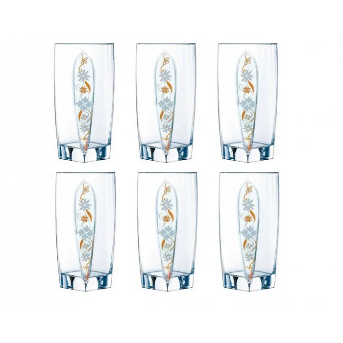 استمتع بالأناقة الفرنسية مع طقم شوب لومينارك المكون من 6 قطع. يتميز بتصميم عصري بقاعدة مربعة ونقوش زهرية جذابة تجمع بين اللونين البرتقالي والرمادي. مثالي لتقديم العصائر والمياه بلمسة فخمة، ومصنوع من زجاج عالي الجودة مقاوم للصدمات وآمن للغسل في غسالة الأطباق.