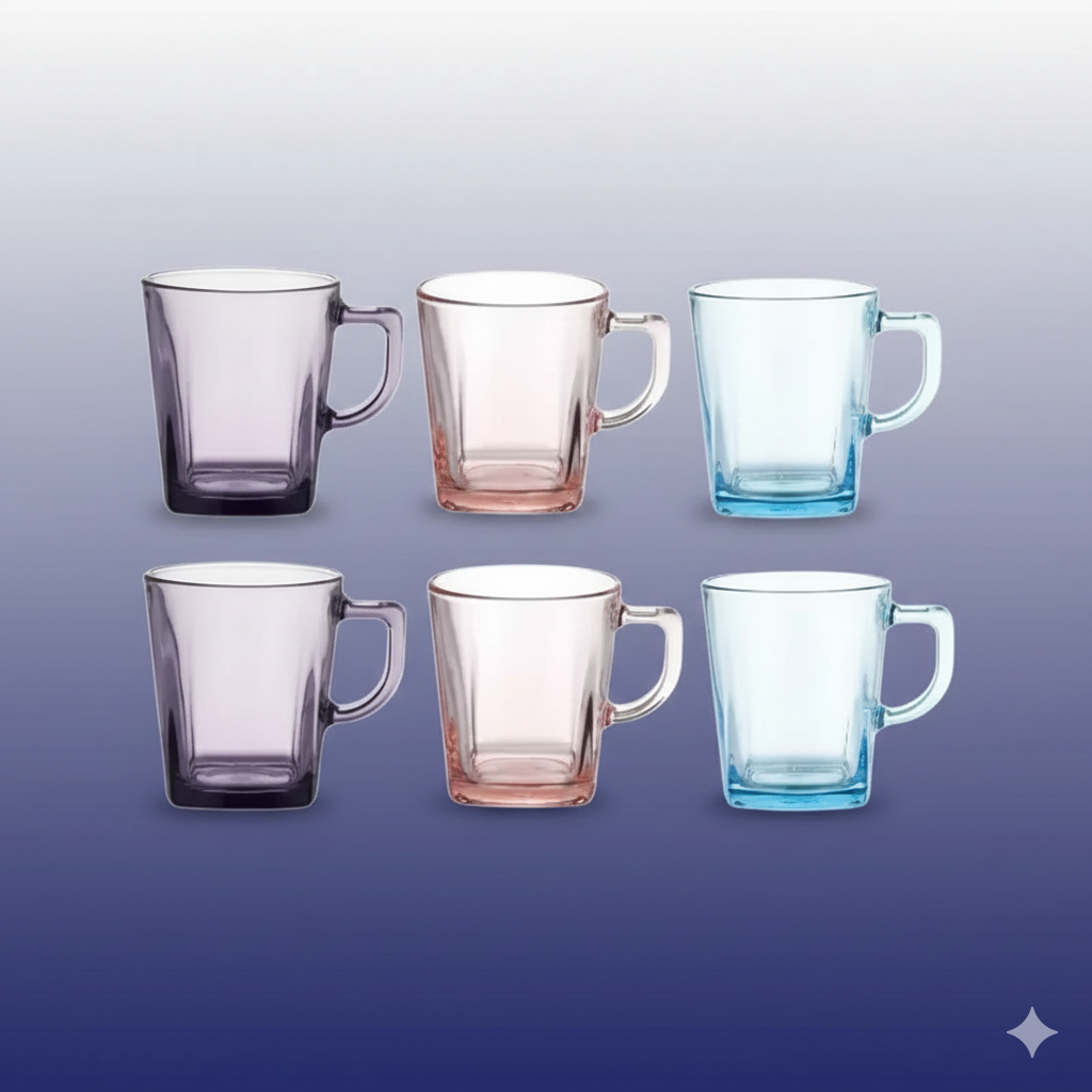 الروز (الوردي الهادئ): هذا اللون ليس مجرد طلاء، بل هو جزء من كيمياء الزجاج نفسه. يرمز اللون الروز في طقم مج كاري روز إلى النعومة والرقي، وهو مثالي لجلسات الشاي الصباحية أو تقديم العصائر في المناسبات السعيدة.
