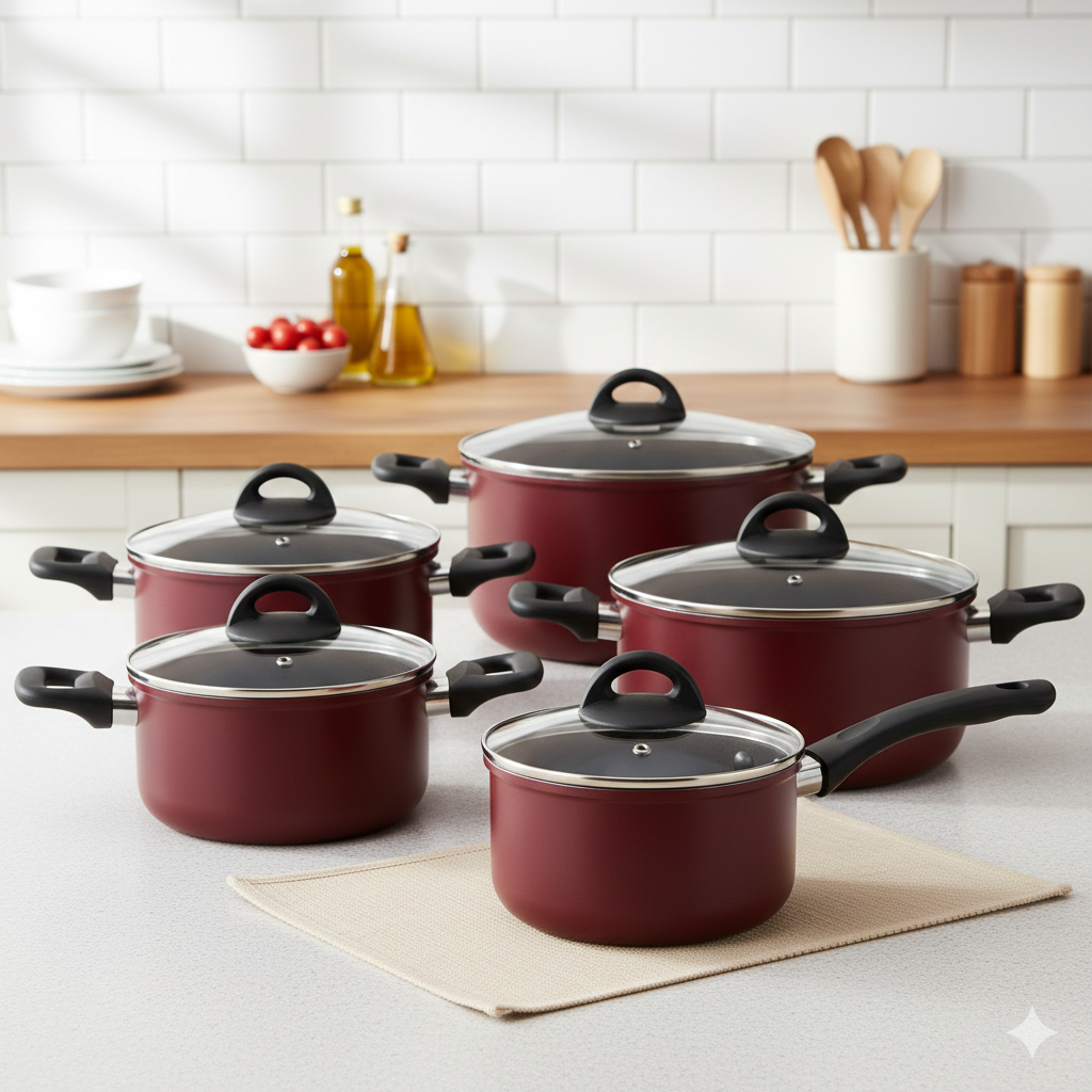 يعتبر طقم حلل تيفال زهران الأصلي حجر الزاوية في أي مطبخ يسعى صاحبه للتميز. إن اختيار “زهران” ليس مجرد شراء لأدوات طهي، بل هو استثمار طويل الأمد في صحة أسرتك وراحة يديكِ. تم تصميم هذا الطقم ليتخطى التوقعات التقليدية، حيث يجمع بين الشكل الجمالي الأنيق باللون النبيذي الفاخر وبين التقنيات الهندسية التي تضمن نضج الطعام بجودة تضاهي أشهر المطاعم العالمية.