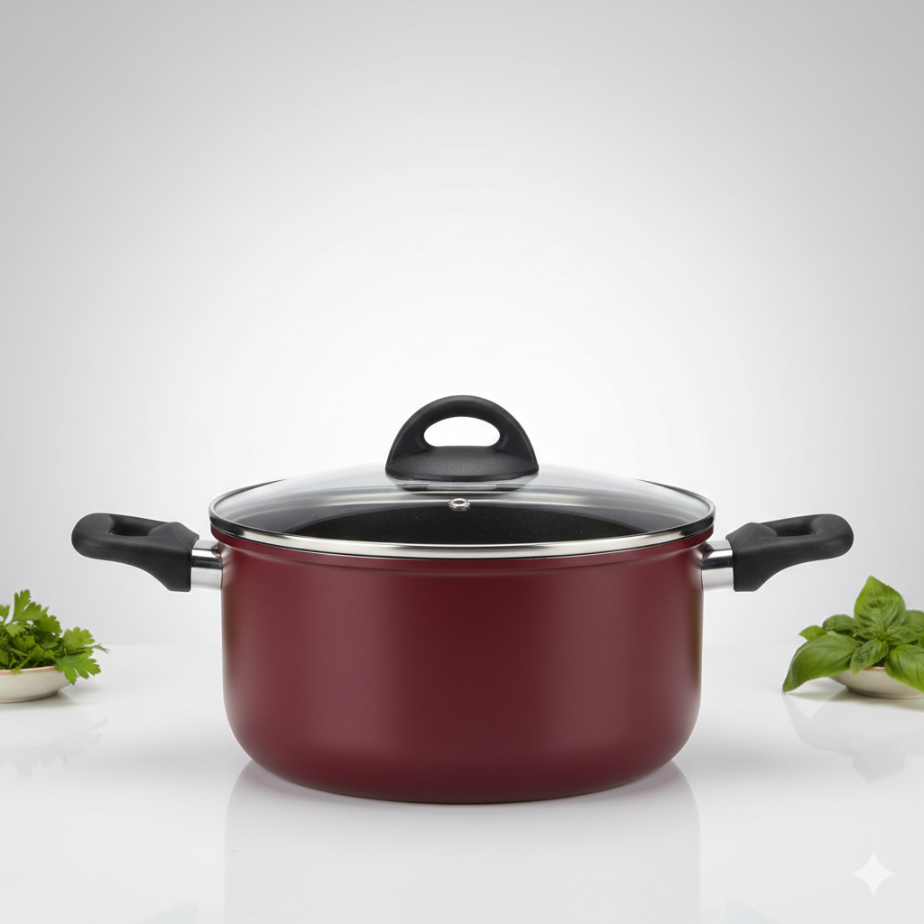 الأغطية الزجاجية: مصنوعة من زجاج “بيركس” المعالج حرارياً، مزودة بفتحة تهوية لخروج البخار الزائد ومنع فوران الطعام.