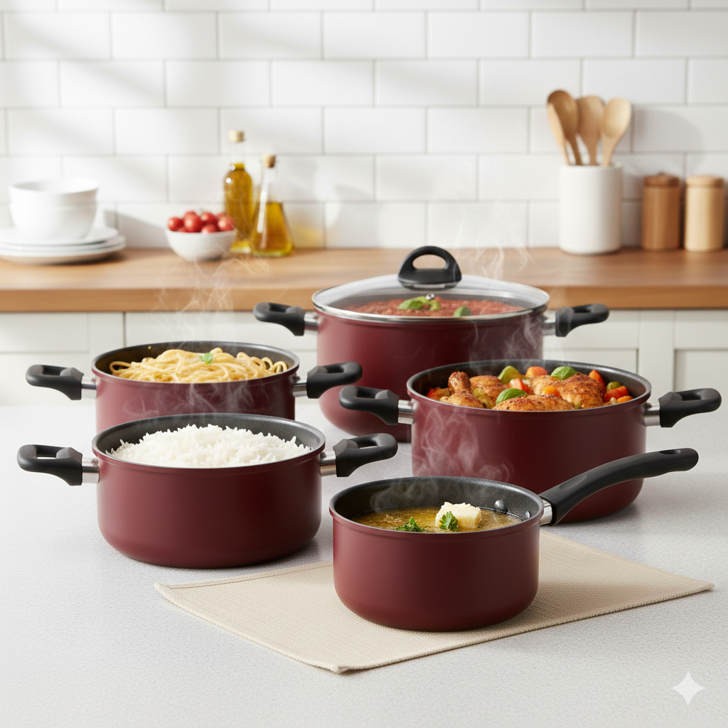 يتكون هذا الطقم من مجموعة قطع مدروسة بعناية لتغطية كافة سيناريوهات الطهي: